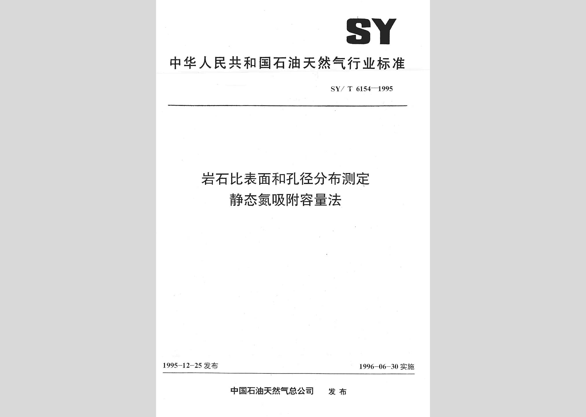 SY/T6154-1995:岩石比表面和孔径分布测定静态氮吸附容量法废止