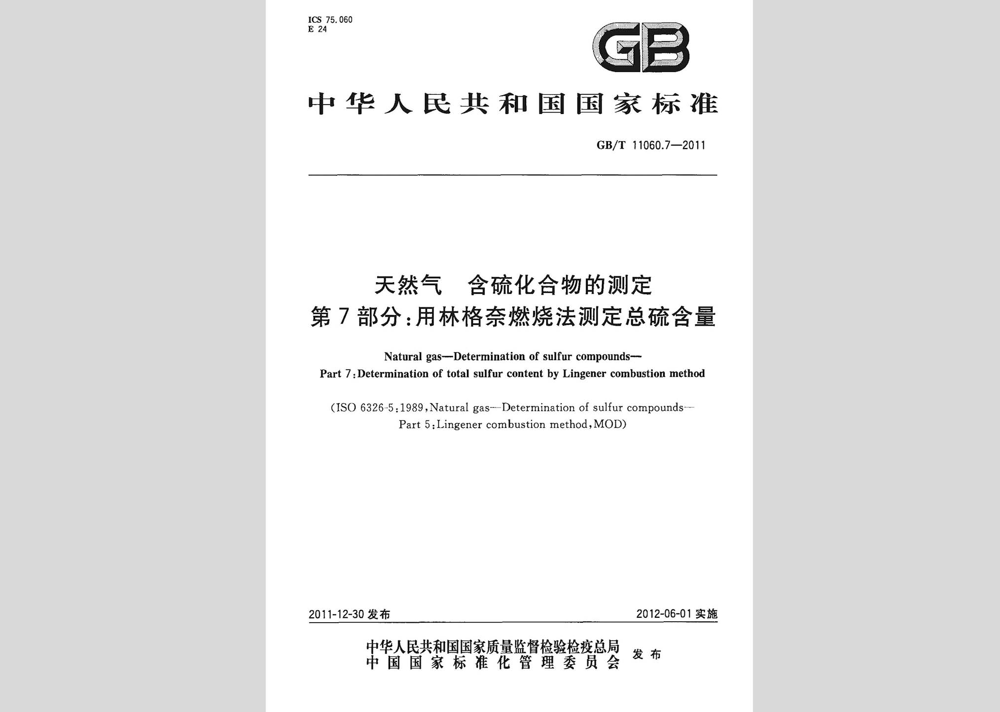GB/T 11060.7-2011:天然气含硫化合物的测定第7部分:用林格奈燃烧法测定总硫含量废止