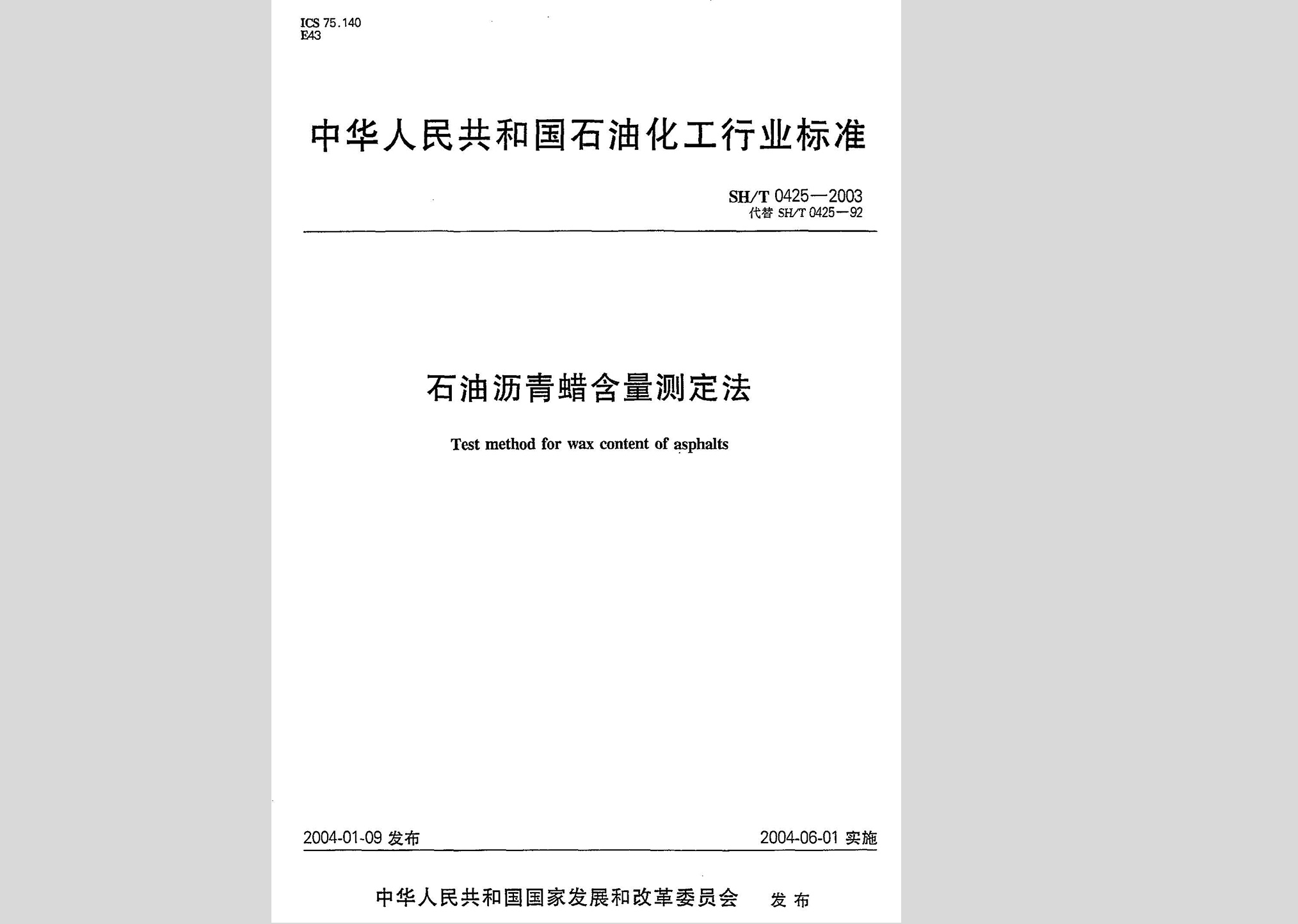 SH/T 0425-2003:石油沥青蜡含量测定法现行