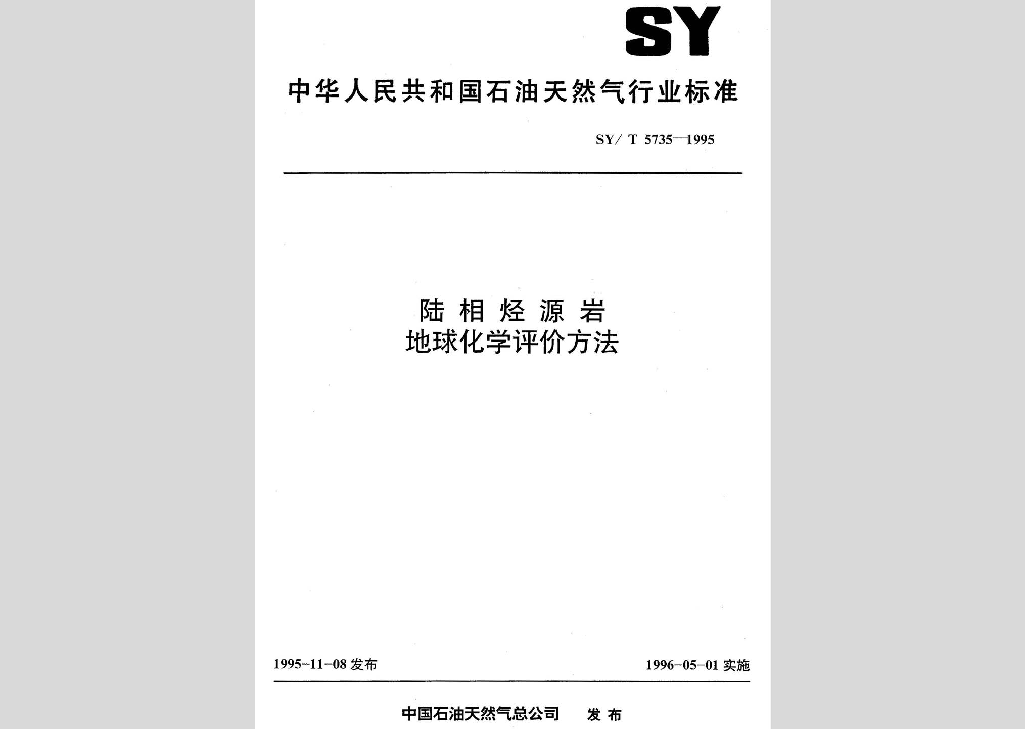 SY/T 5735-1995:陆相烃源岩地球化学评价方法废止