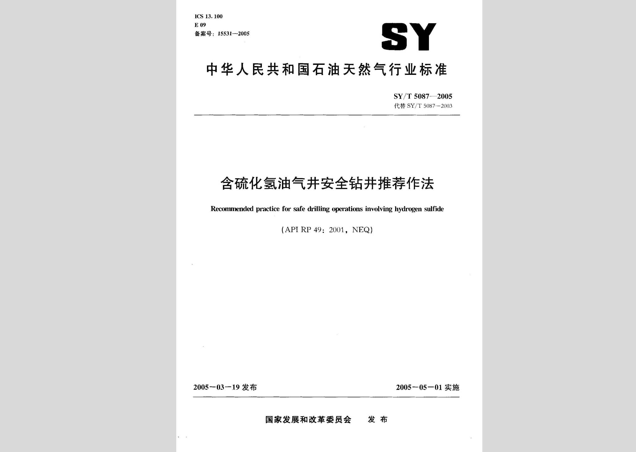 SY/T 5087-2005:含硫化氢油气井安全钻井推荐作法废止
