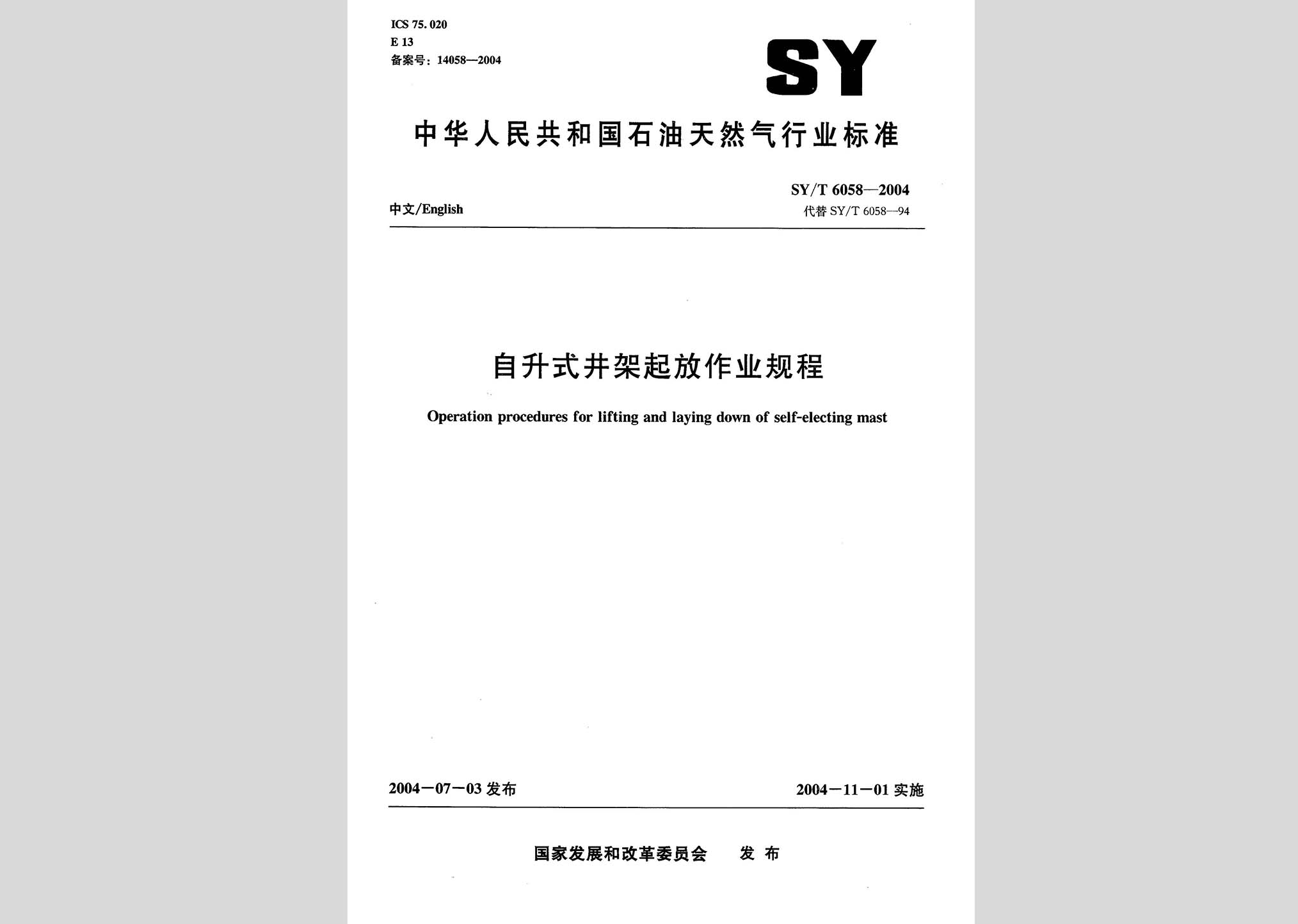 SY/T 6058-2004:自升式井架起放作业规程现行