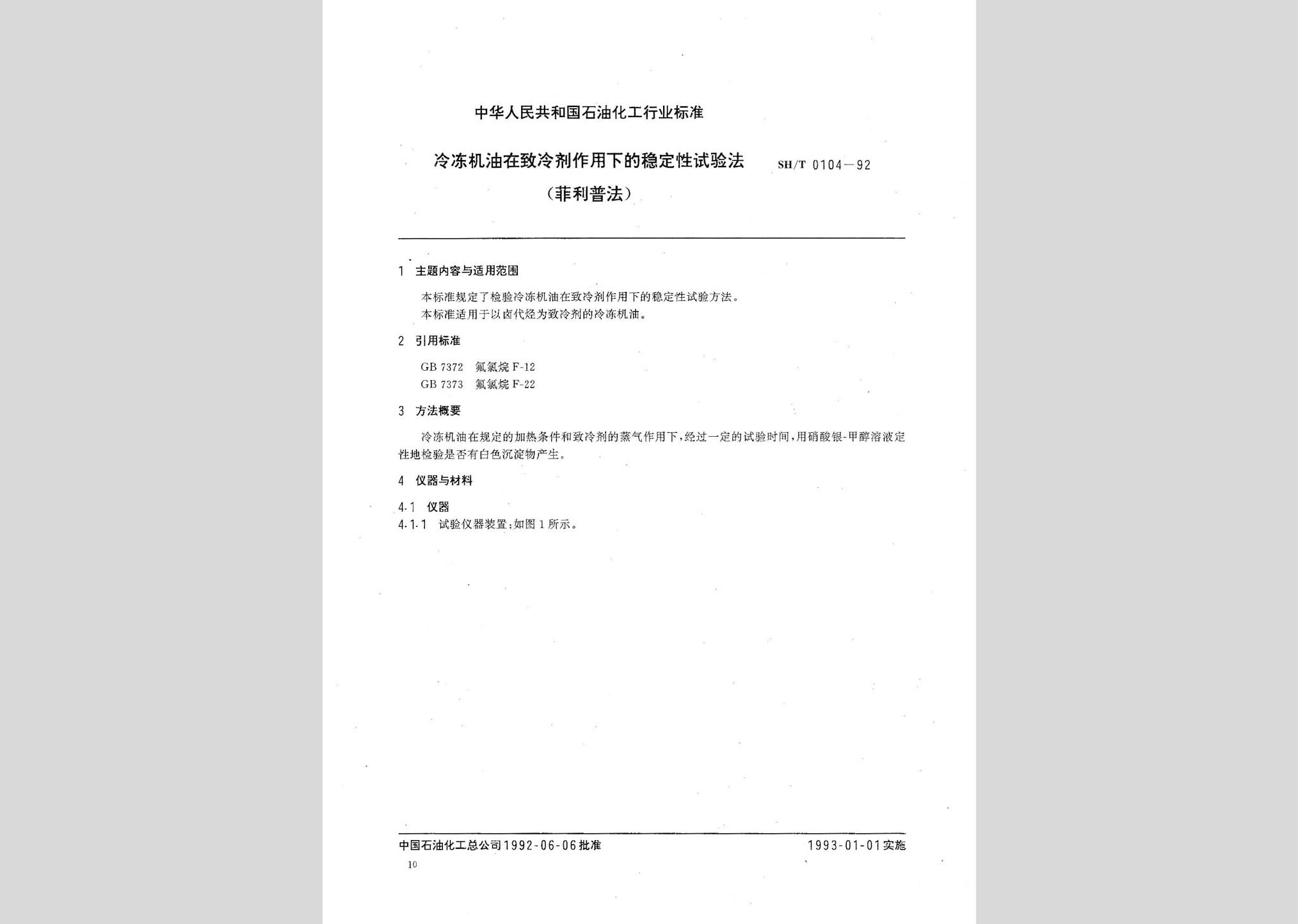 SH/T0104-92:冷冻机油在致冷剂作用下的稳定性试验法(菲利普法)现行