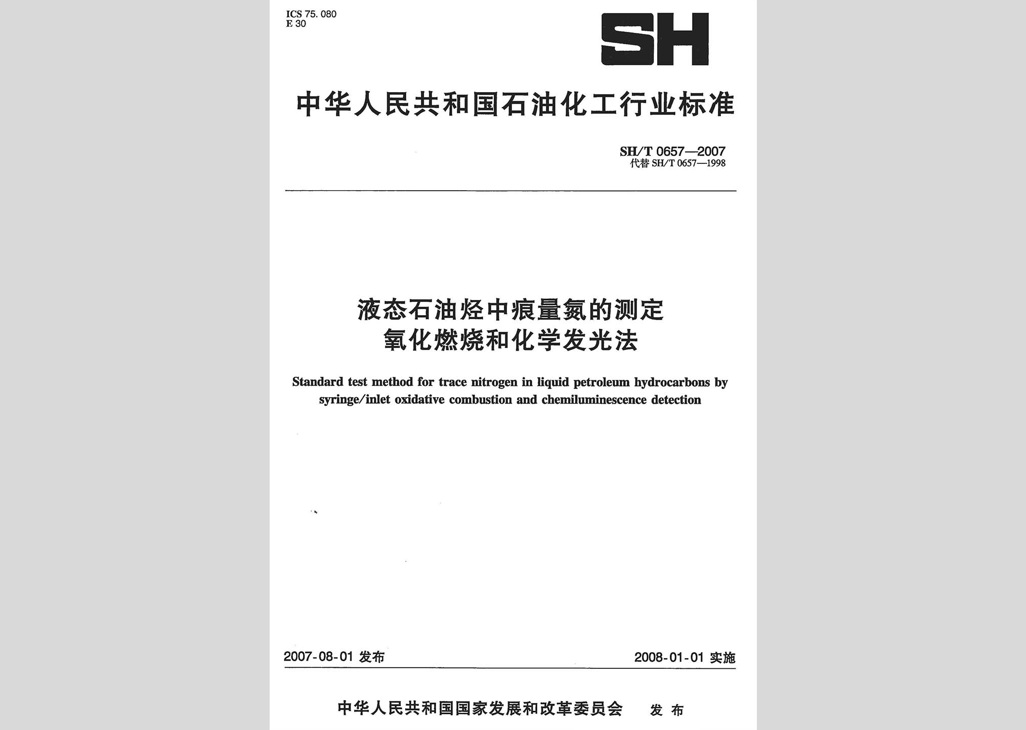 SH/T 0657-2007:液态石油烃中痕量氮的测定氧化燃烧和化学发光法现行
