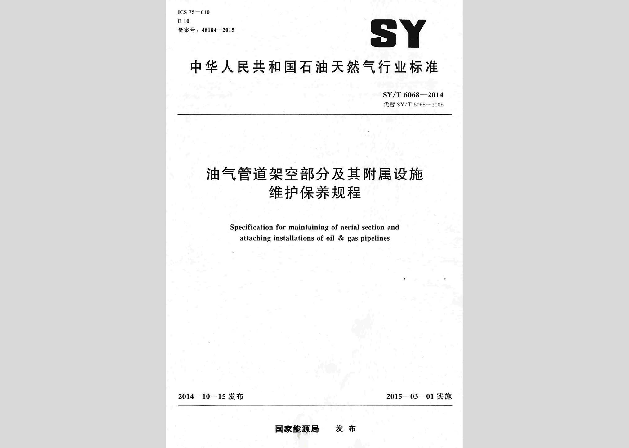 SY/T6068-2014:油气管道架空部分及其附属设施维护保养规程现行