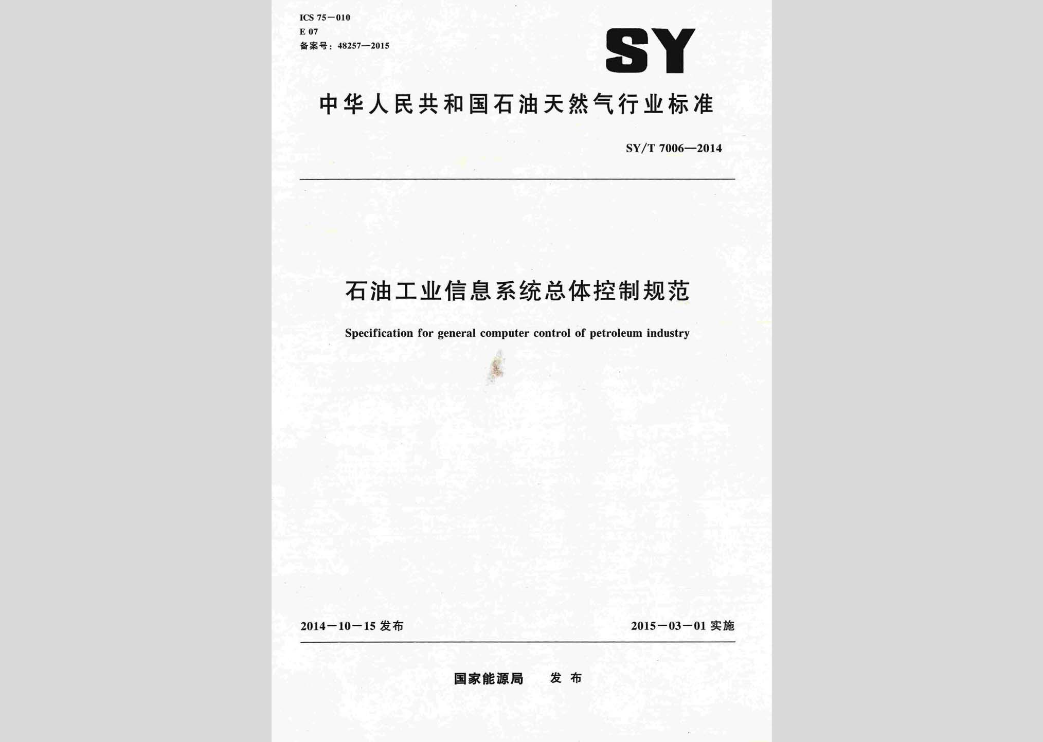 SY/T7006-2014:石油工业信息系统总体控制规范现行