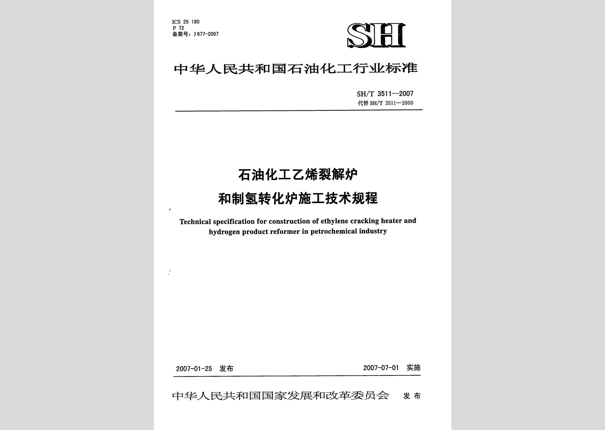 SH/T3511-2007:石油化工乙烯裂解炉和制氢转化炉施工技术规程废止