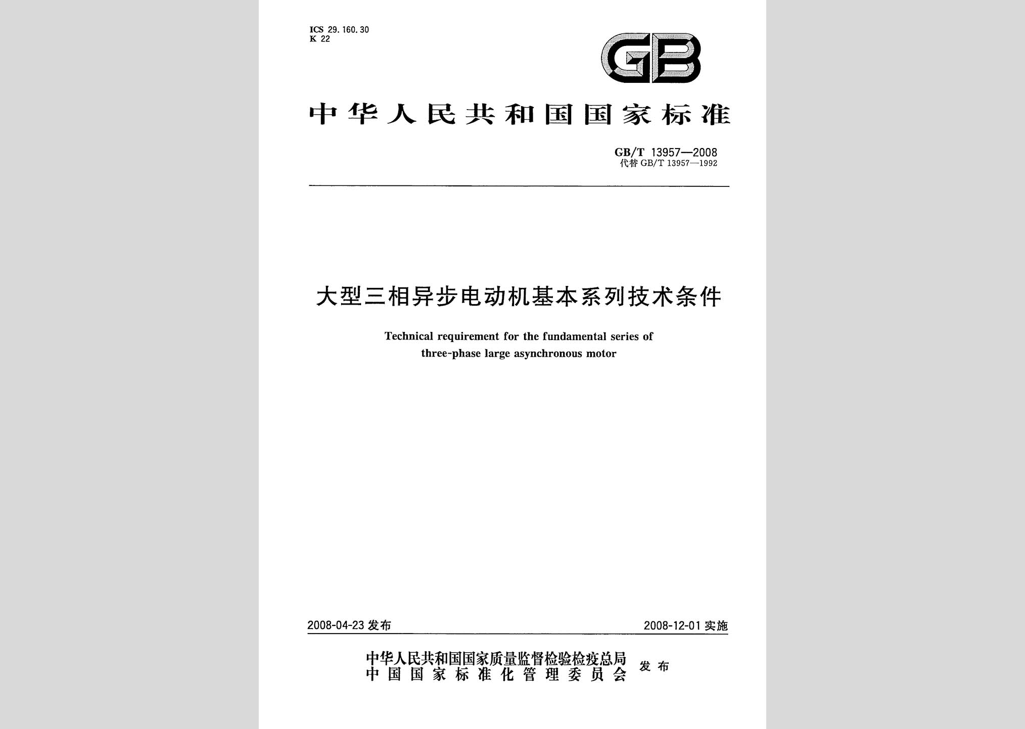 GB/T 13957-2008:大型三相异步电动机基本系列技术条件废止