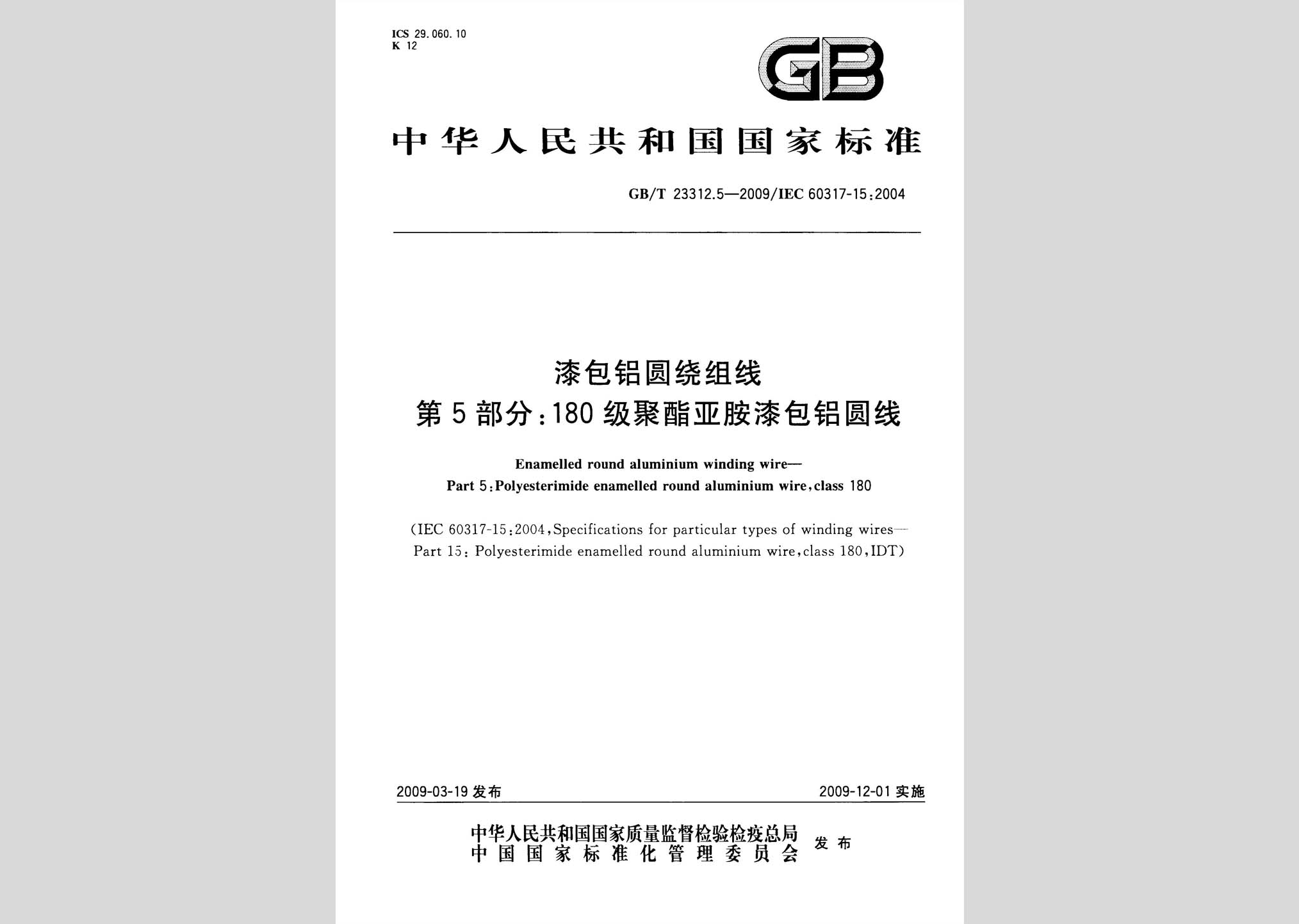 GB/T23312.5-2009:漆包铝圆绕组线第5部分:180级聚醋亚服漆包铝圆线现行