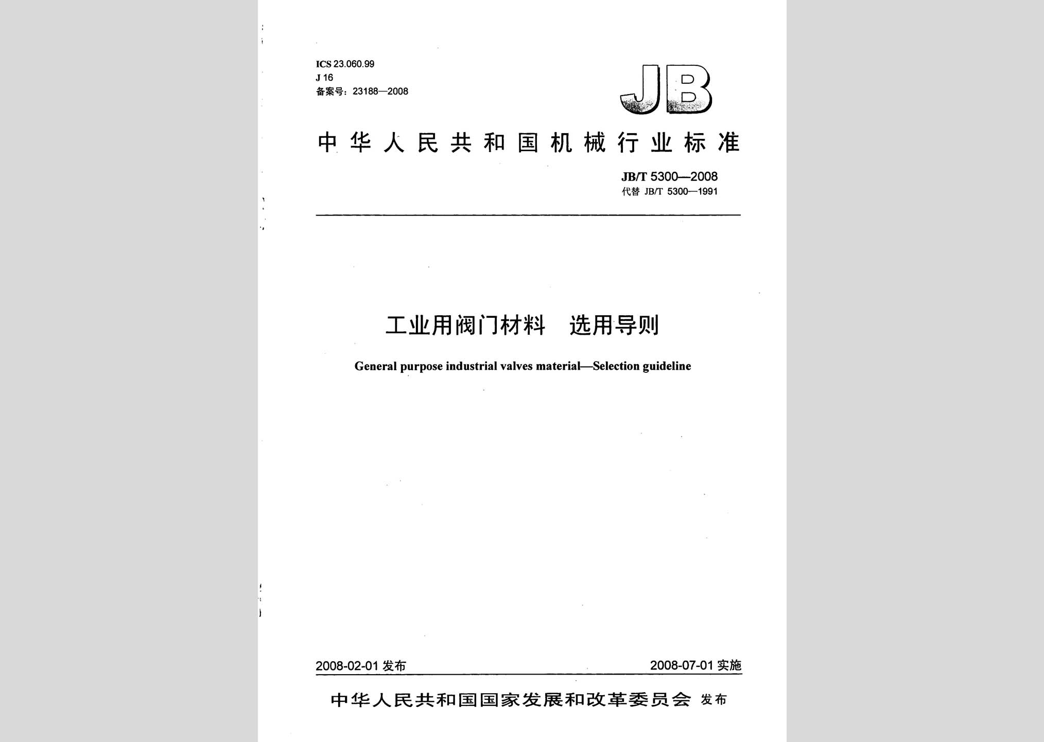 JB/T5300-2008:工业用阀门材料选用导则现行