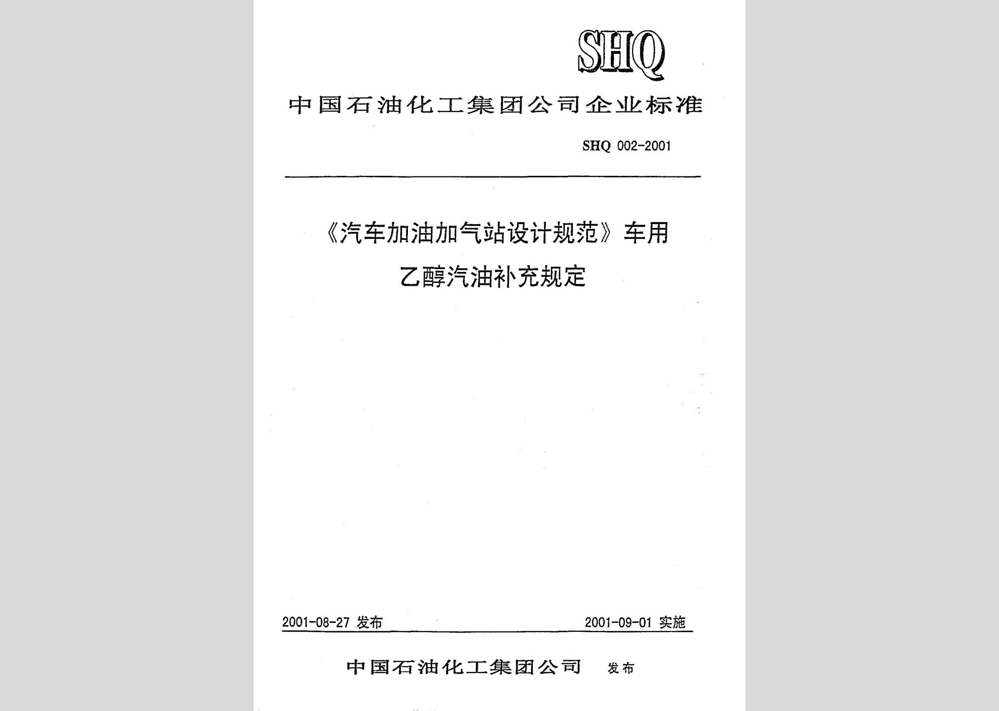 SHQ002-2001:《汽车加油加气站设计规范》车用乙醇汽油补充规定现行