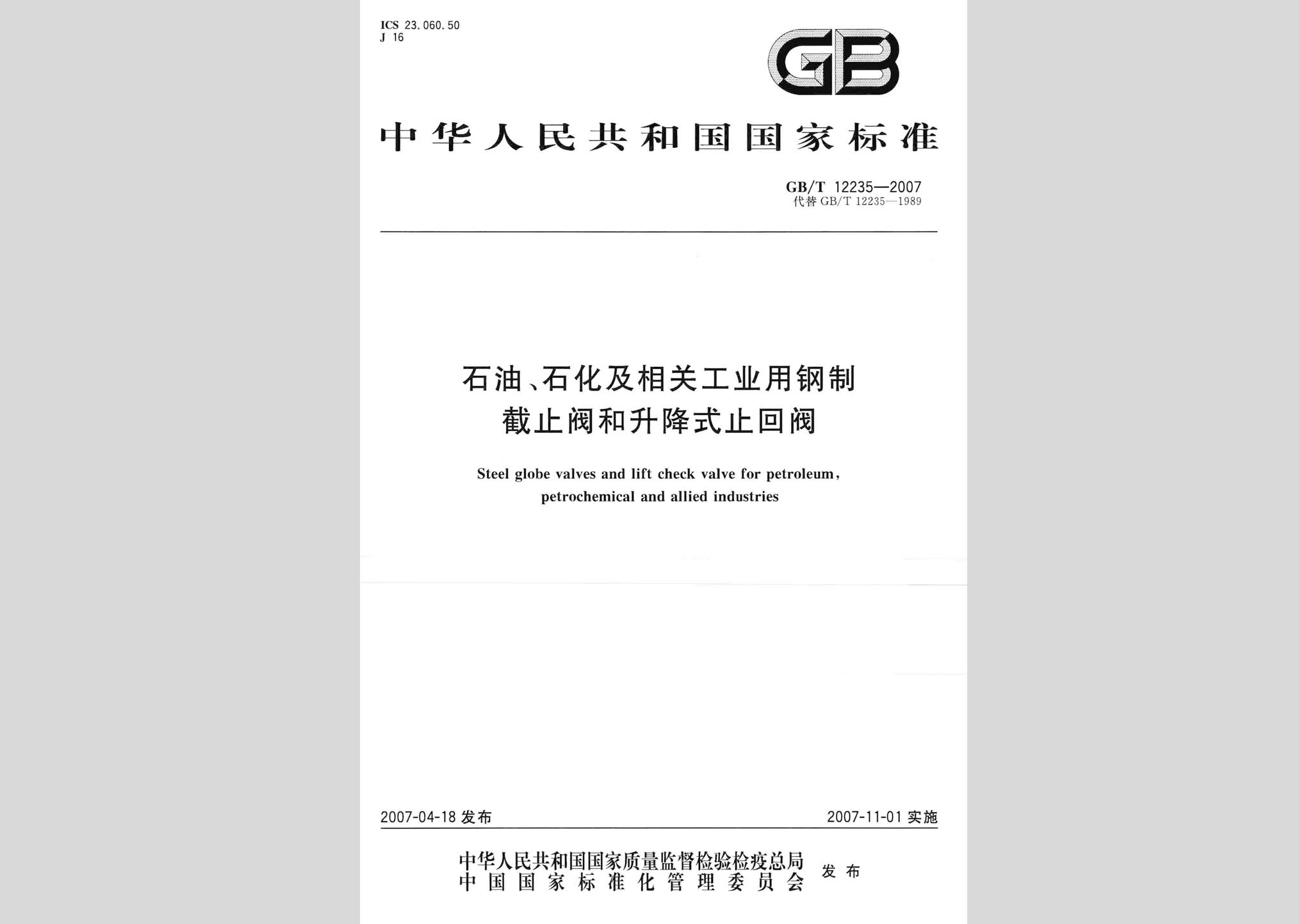 GB/T12235-2007:石油、石化及相关工业用钢制截止阀和升降式止回阀现行