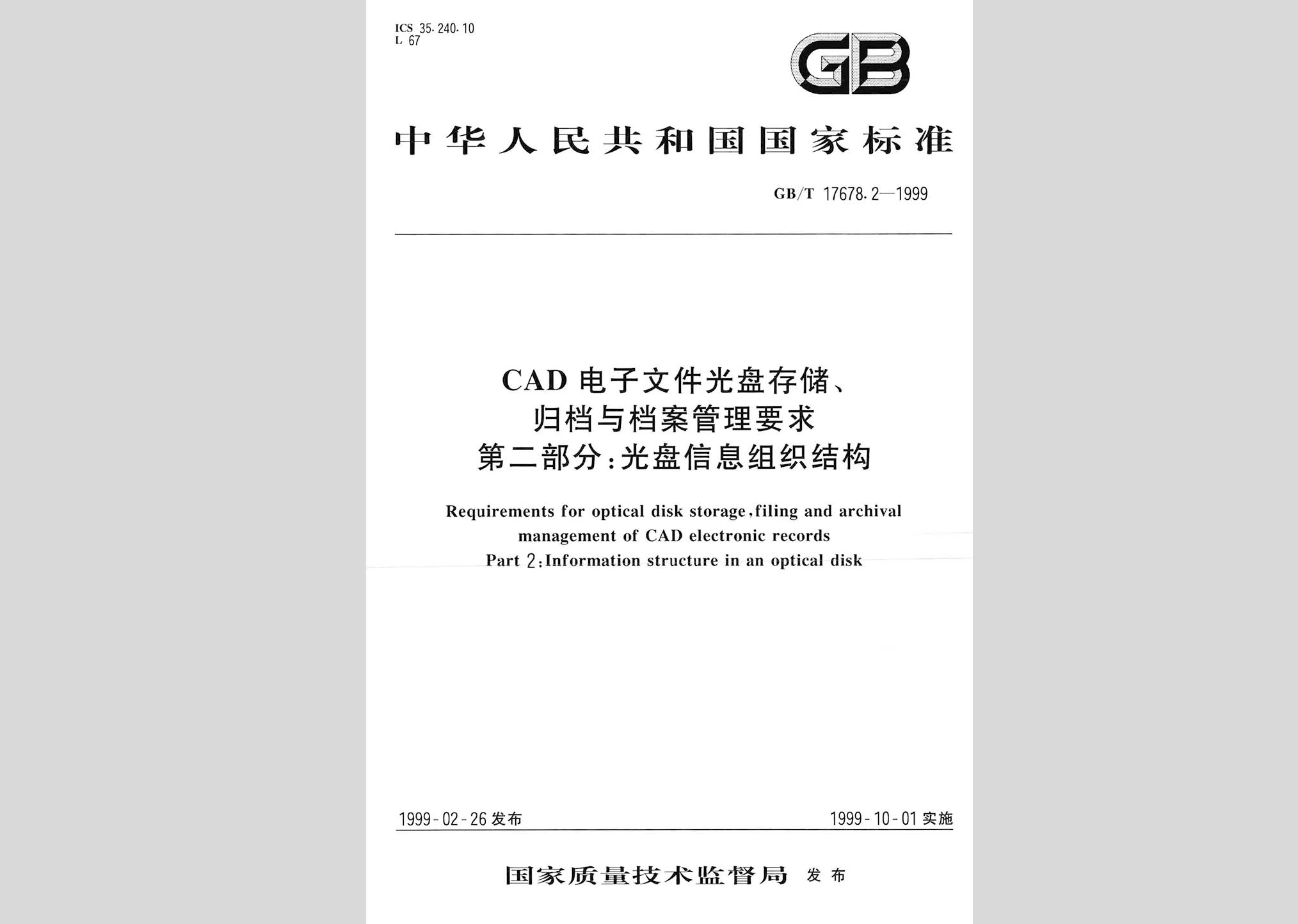 GB/T17678.2-1999:CAD电子文件光盘存储、归档与档案管理要求第二部分:光盘信息组织结构现行