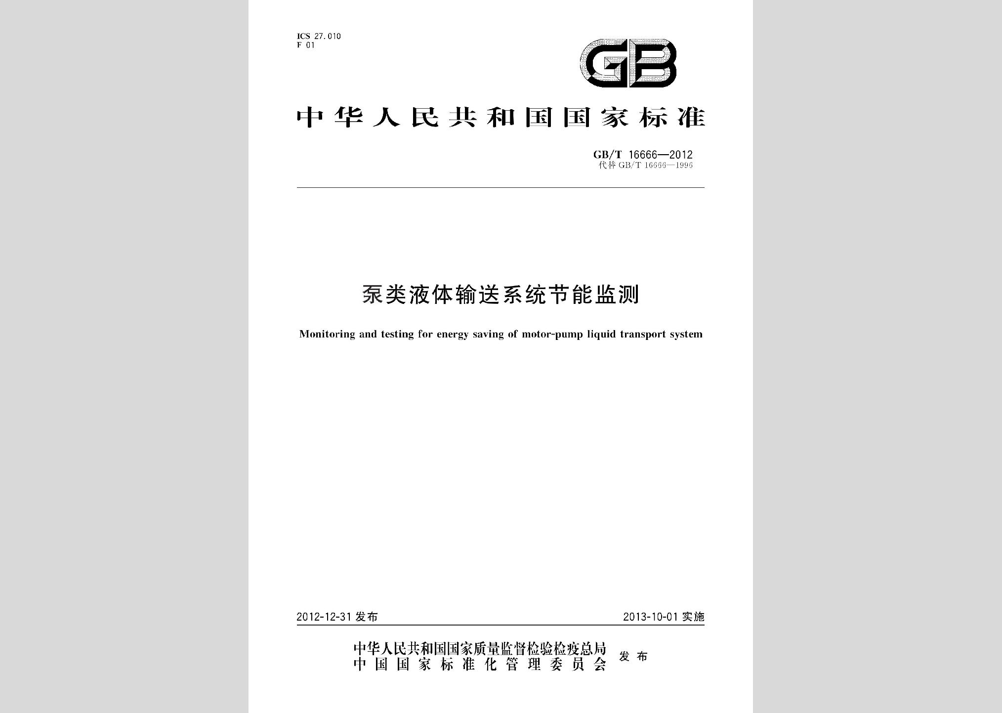 GB/T16666-2012:泵类液体输送系统节能监测现行