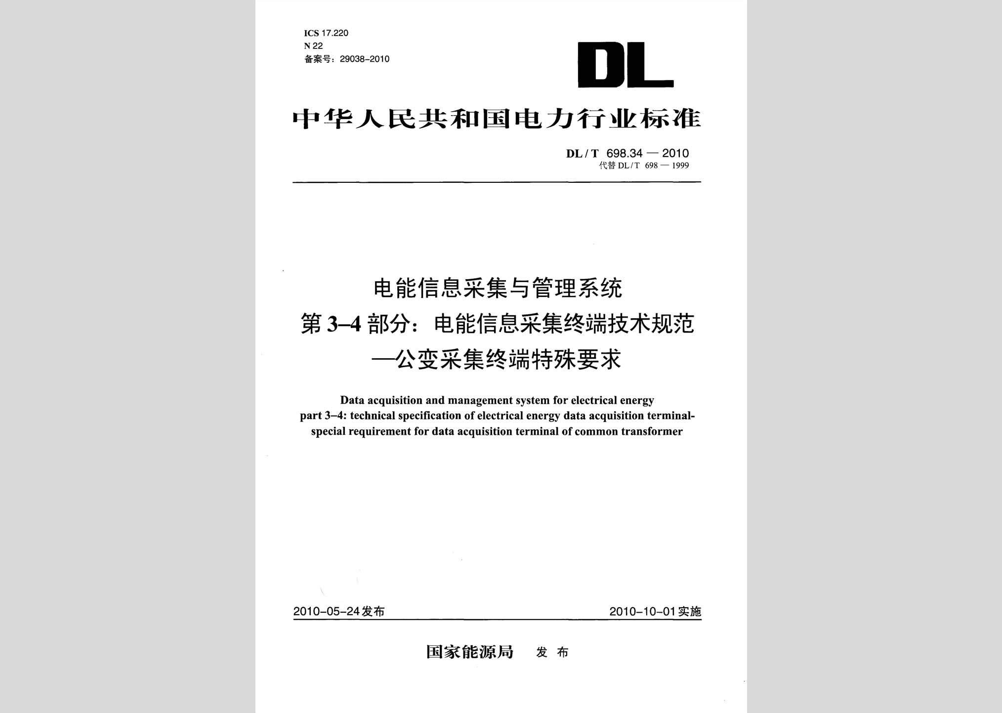 DL/T698.34-2010:电能信息采集与管理系统第3-4部分:电能信息采集终端技术规范一公变采集终端特殊要求现行