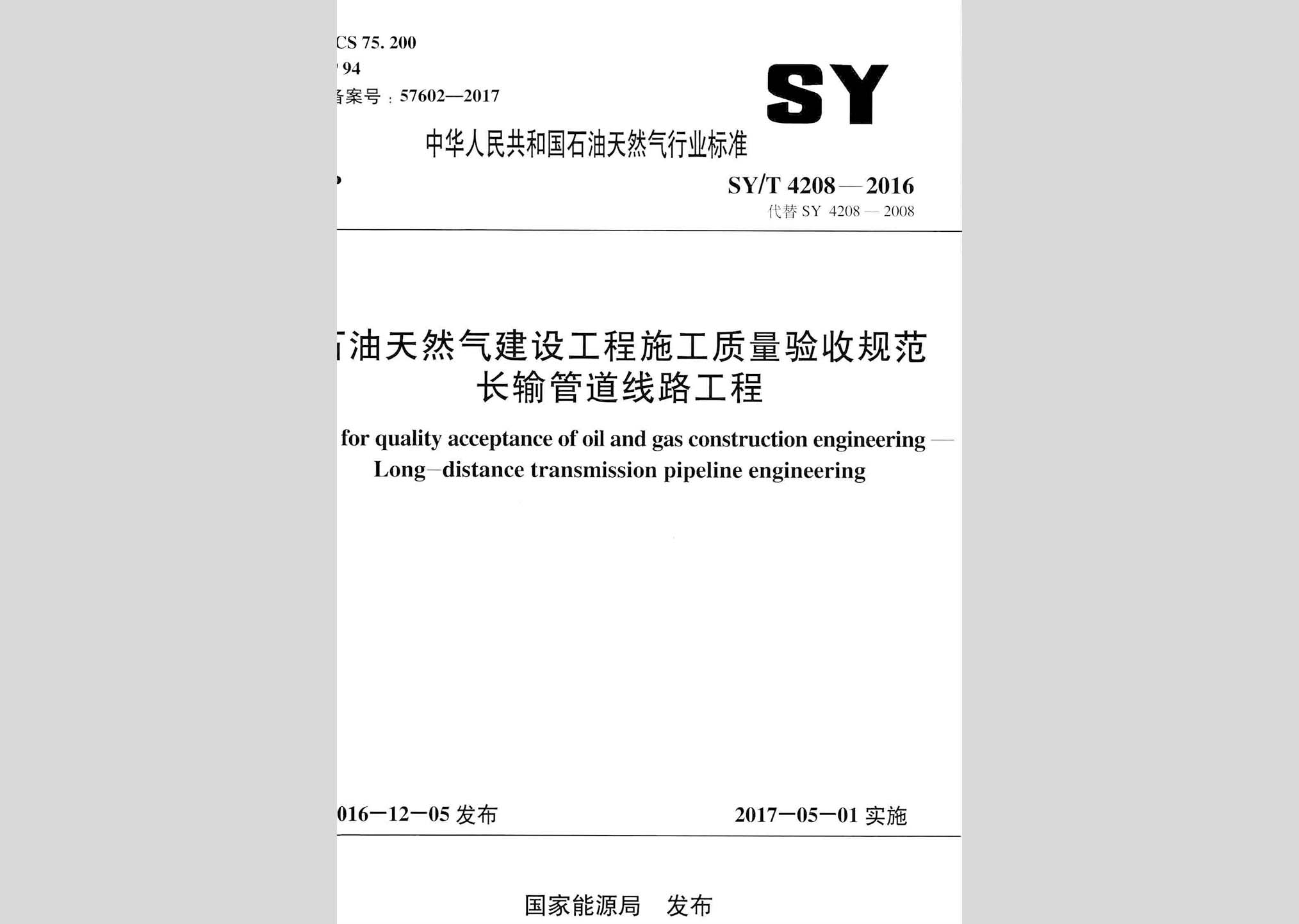 SY/T4208-2016:石油天然气建设工程施工质量验收规范长输管道线路工程现行
