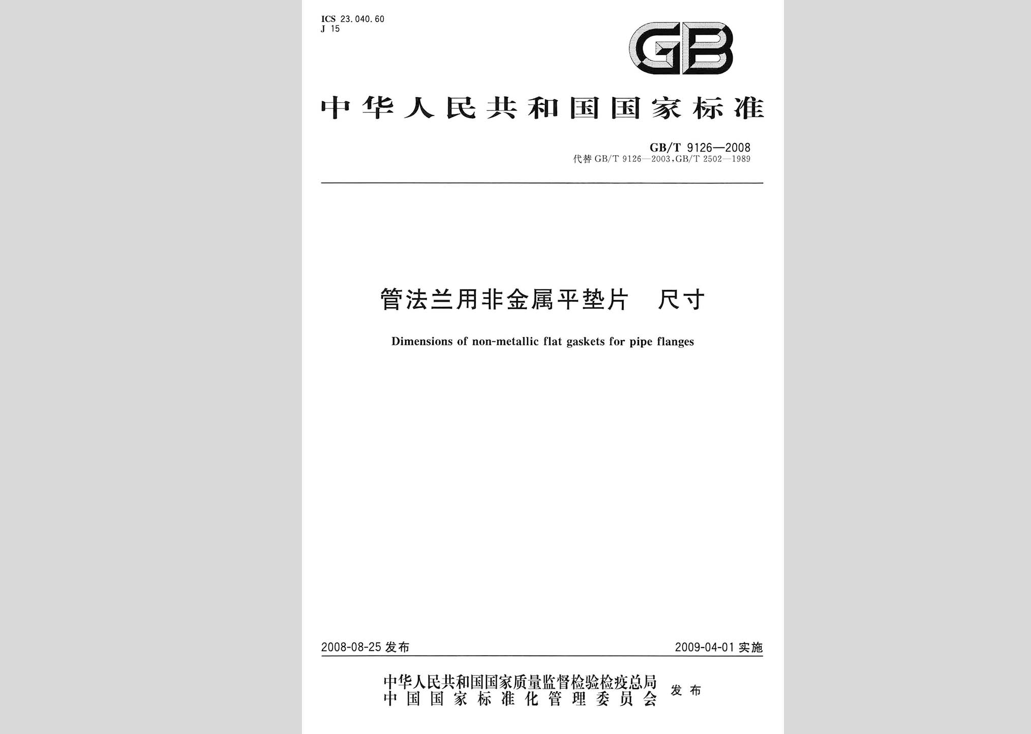 GB/T9126-2008:管法兰用非金属平垫片尺寸现行