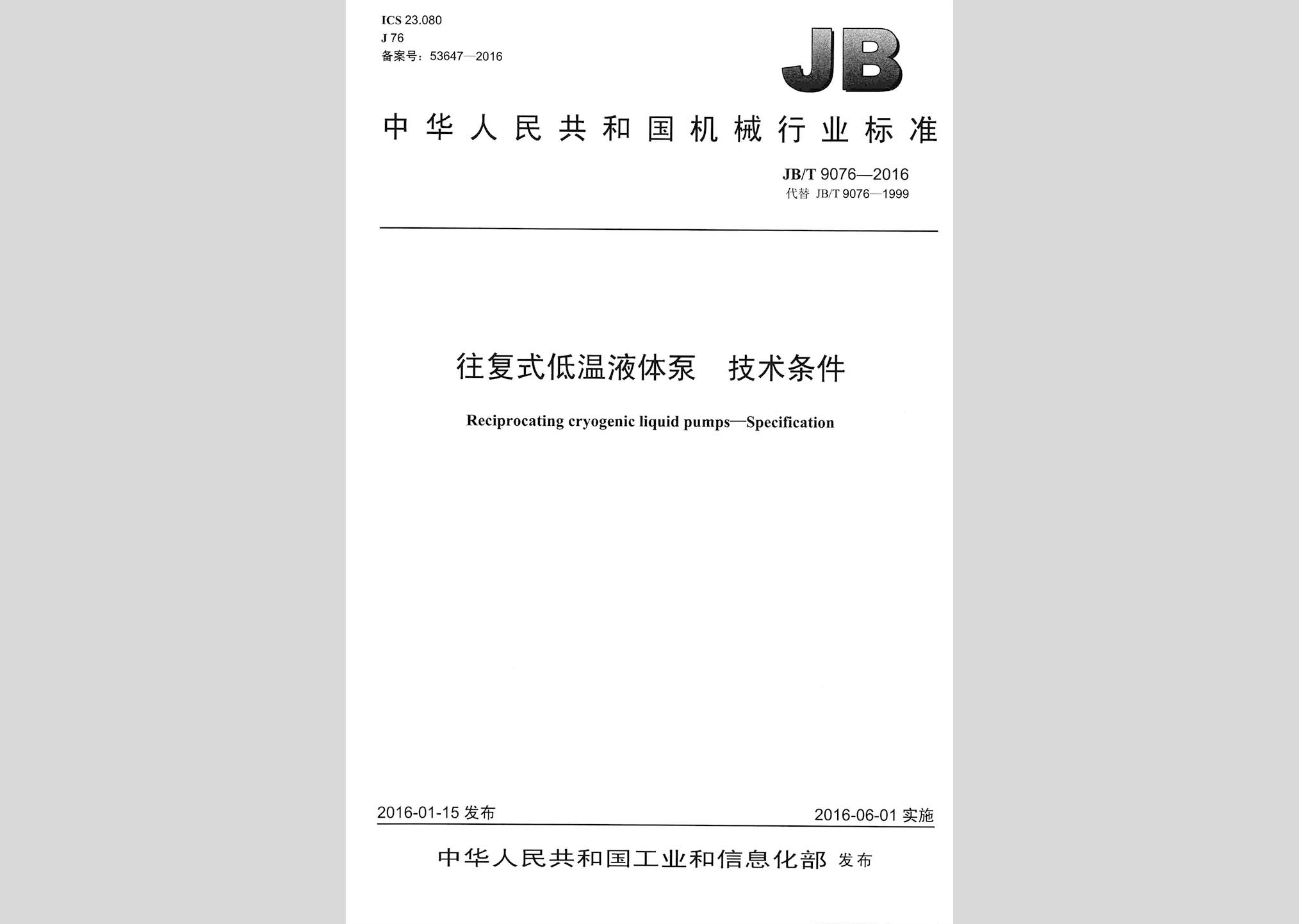 JB/T9076-2016:往复式低温液体泵技术条件现行