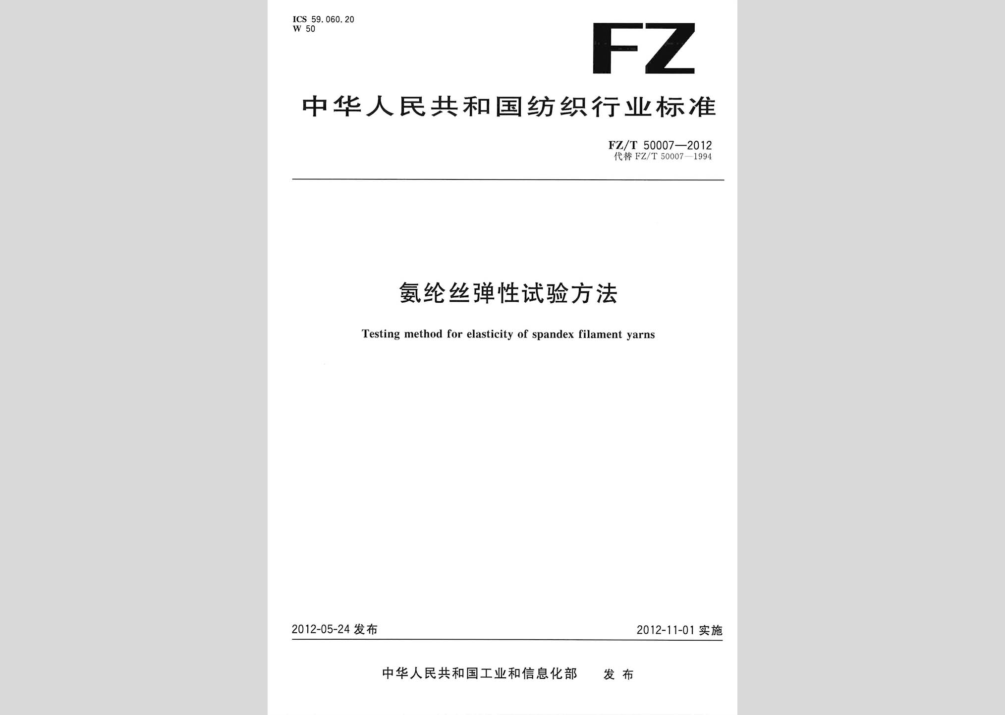 FZ/T50007-2012:氨纶丝弹性试验方法现行