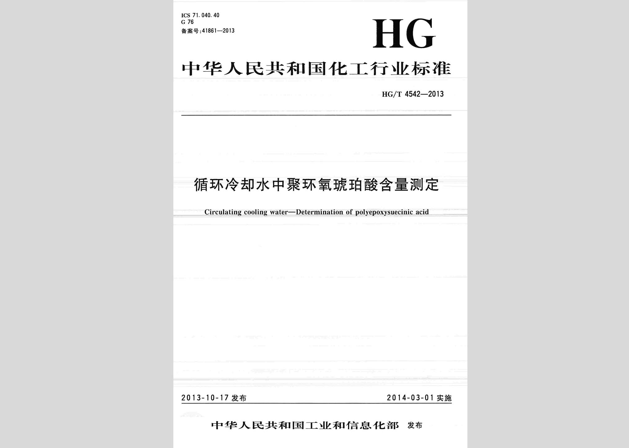 HG/T4542-2013:循环冷却水中聚环氧琥珀酸含量测定现行