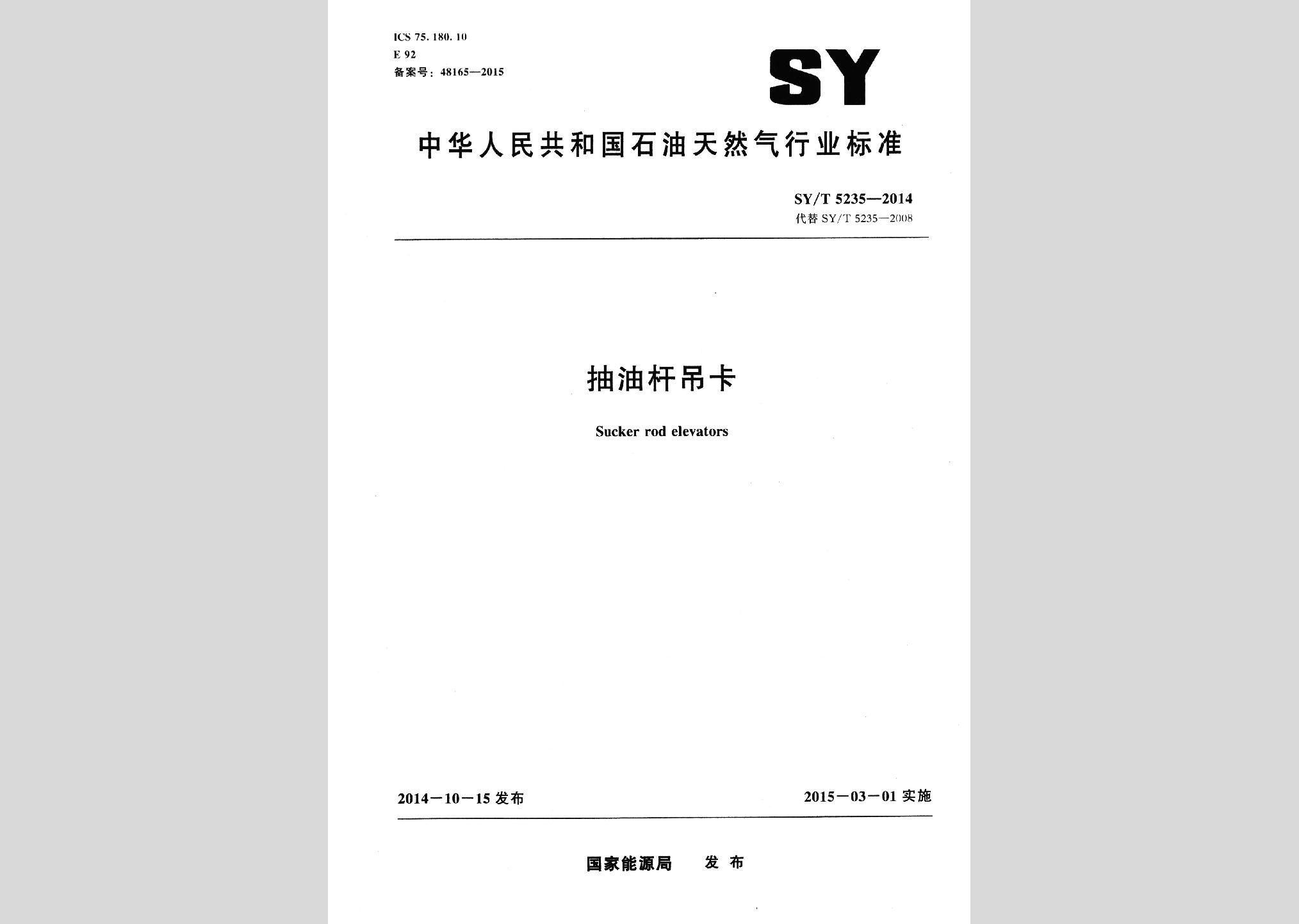 SY5235-2014:抽油杆吊卡
