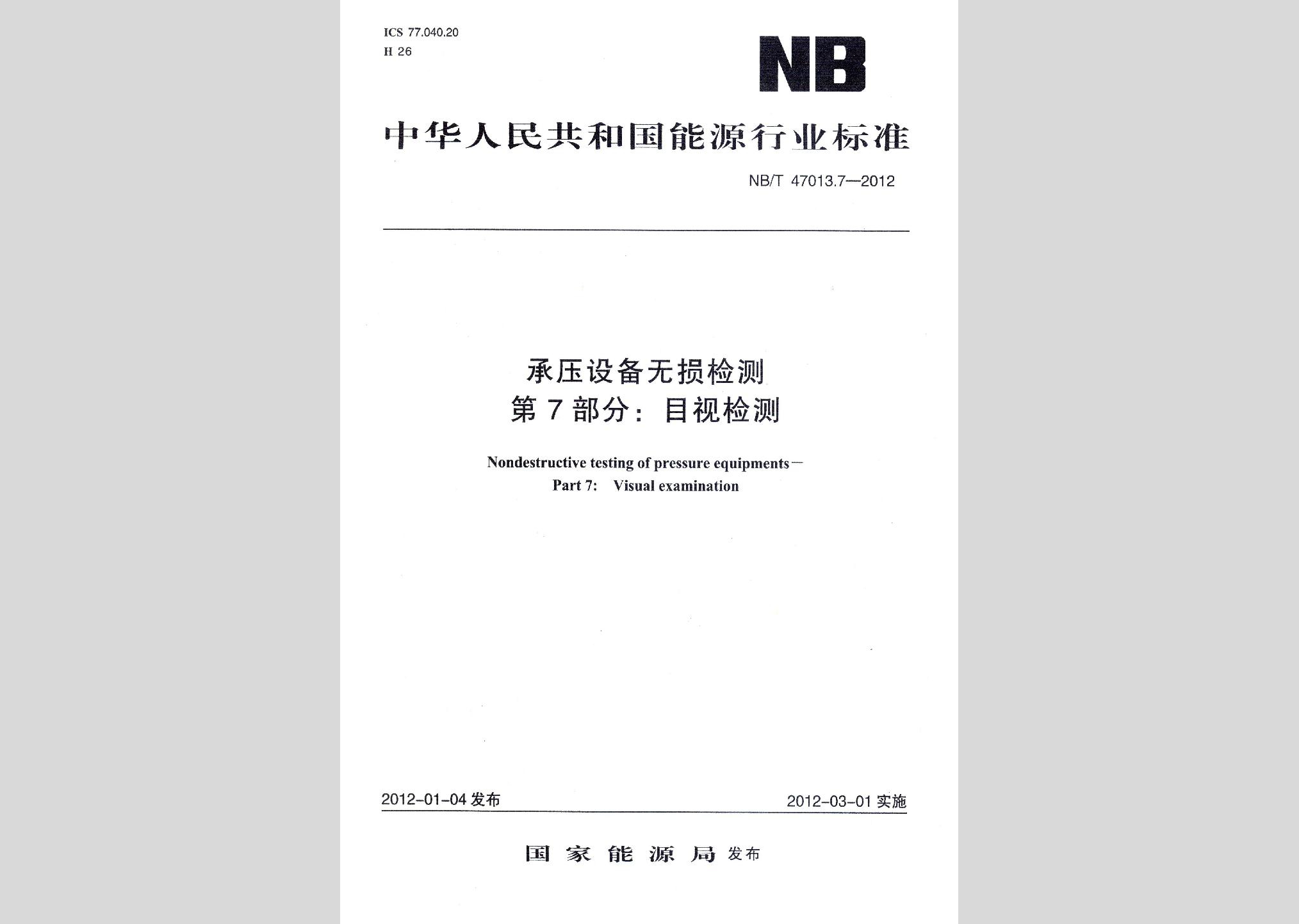 NB/T47013.7-2015:承压设备无损检测第7部分:目视检测现行