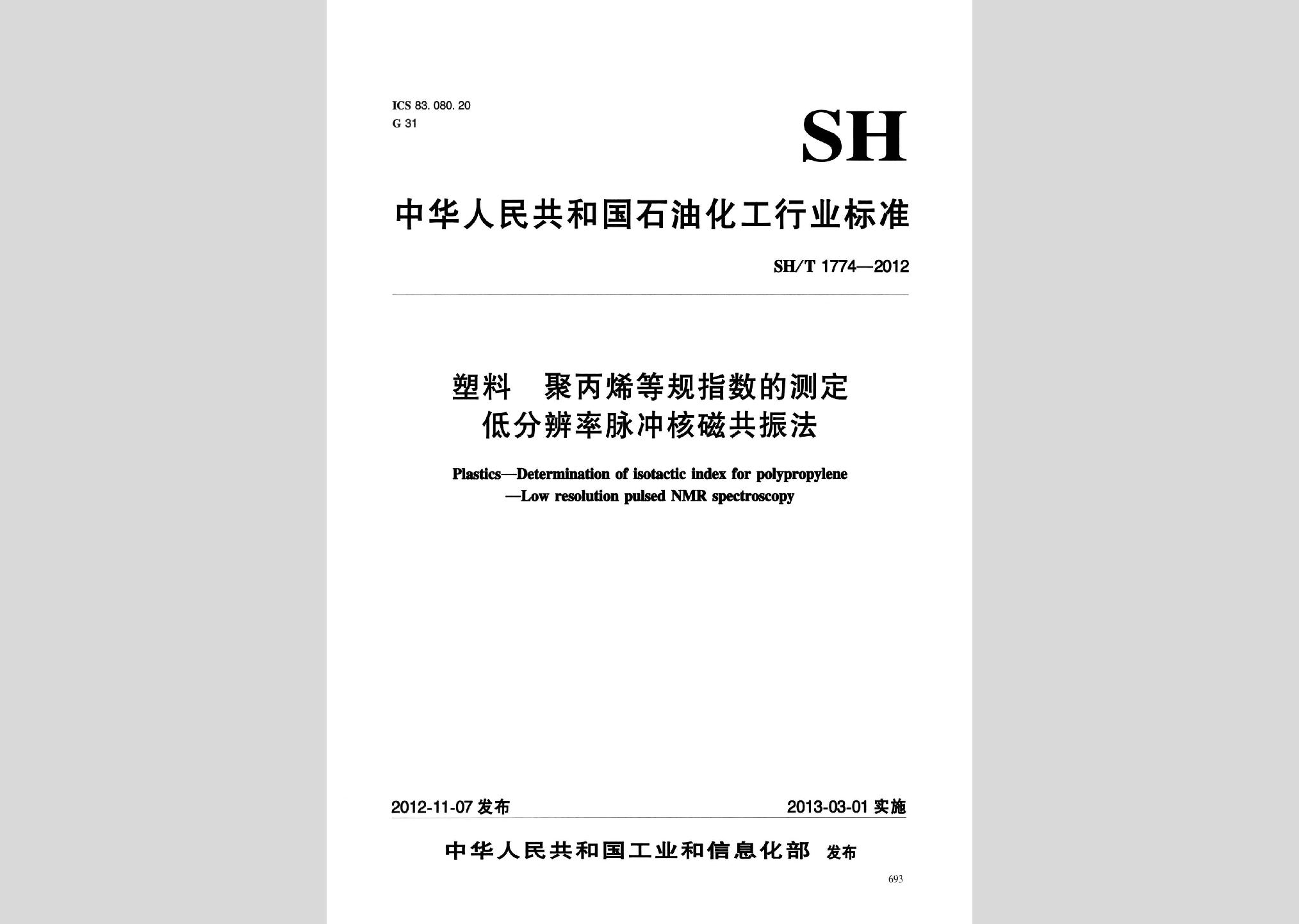SH/T1774-2012:塑料聚丙烯等规指数的测定低分辨率脉冲核磁共振法现行